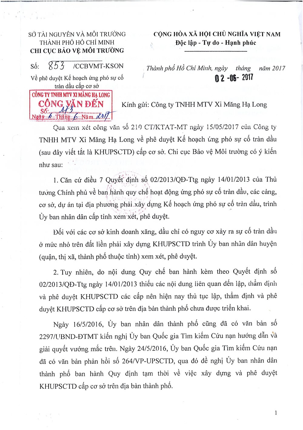 Phê duyệt Kế hoạch ứng phó sự cố tràn dầu cấp cơ sở