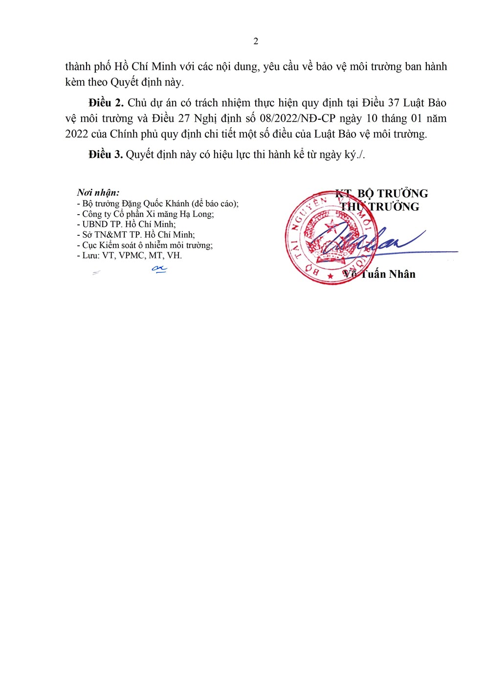 Quyết định phê duyệt kết quả thẩm định báo cáo đánh giá tác động môi trường của Dự án ” Trạm nghiền xi măng Hiệp Phước – Nhà máy xi măng Hạ Long nâng công suất từ 1,22 triệu tấn xi măng/1 năm lên 1,5 triệu tấn xi măng/1 năm” tại Lô C25 KCN Hiệp Phước, Xã Hiệp Phước, huyện Nhà Bè Tp. HCM