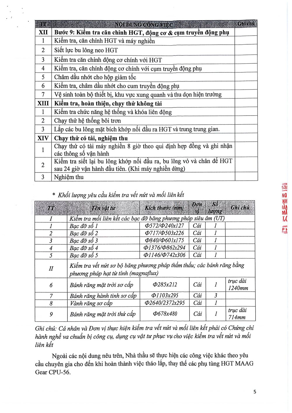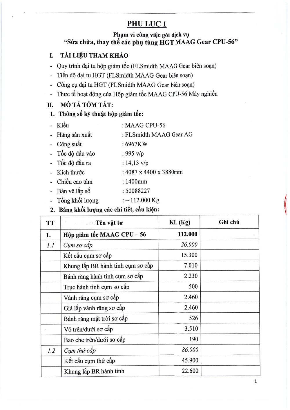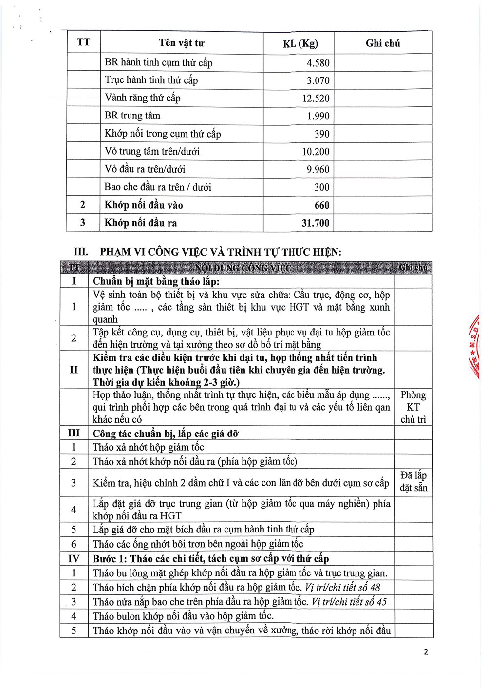 Thư mời chào giá cạnh tranh gói dịch vụ “Sửa chữa, thay thế các phụ tùng HGT MAAG GEAR CPU-56”